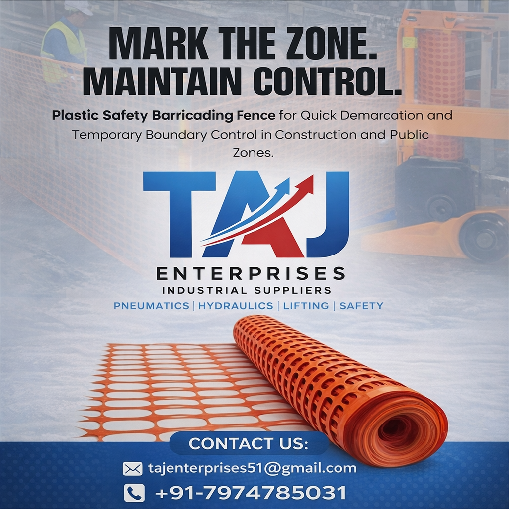 Plastic Safety Barricading Fence is designed for quick and effective area demarcation in construction sites, industrial zones, and public spaces. Made from high-quality durable plastic, it is lightweight, flexible, and easy to install or relocate as needed. Its bright color ensures high visibility, helping improve safety and control restricted areas efficiently. Ideal for temporary boundary marking, crowd control, and hazard identification, this fencing solution is weather-resistant and reusable, making it a cost-effective safety product for various applications. For inquiries and orders TAJ Enterprises Industrial Suppliers Email - tajenterprises51@gmail.com Contact - +91-7974785031