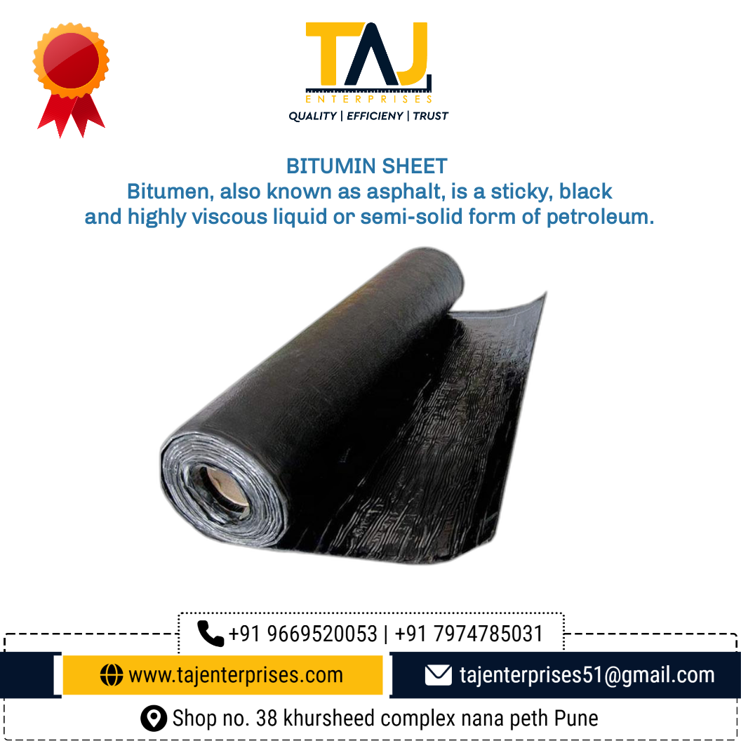 #TAJENTERPRISES #bituminsheetwaterproofing #bitumin #waterproof #waterproofing #india #manufacturer #suppliers Bitumen, also known as asphalt, is a sticky, black and highly viscous liquid or semi-solid form of petroleum. Thanks to its waterproofing qualities, it is widely used in construction. Bituminous membranes are perfect for waterproofing roofs, basements, below-ground structures, bridges and other structures.